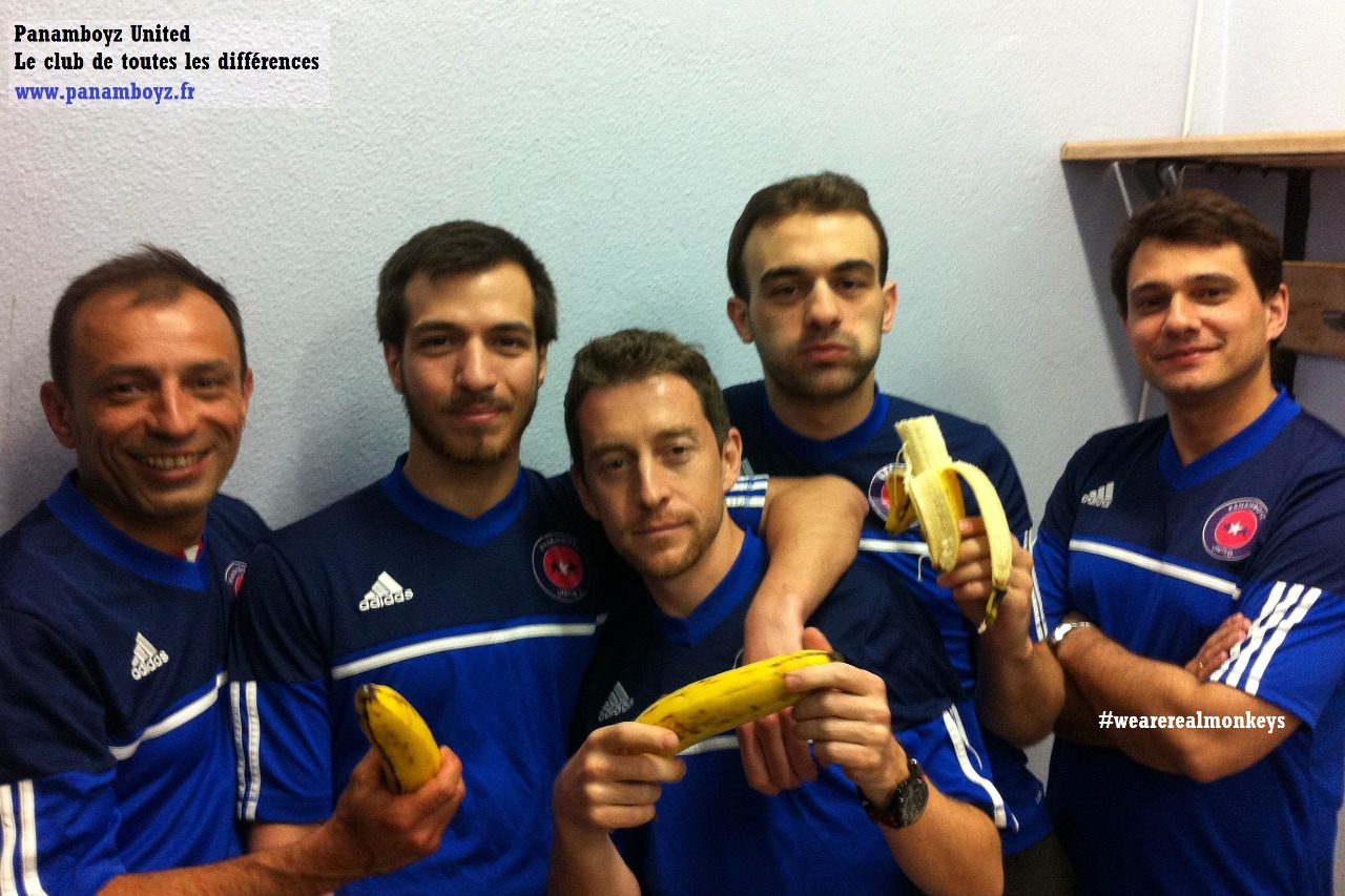 Le club est fier de s'associer au "manger de banane" de Dani Alves, joueur brésilien du FC Barcelone victime d'actes racistes le week-end dernier en Ligua espagnole. Soyons fiers de notre diversité au lieu de stigmatiser la couleur, la sexualité ou la religion des uns et des autres ! Nous saluons la réaction exemplaire et pleine d'humour de Dani Alvès face à la bêtise humaine ordinaire de certains pseudo supporters. En guise de clin d’œil et de soutien, nous avons pris la pose, banane à la main, hier avant l'entraînement. Et si on respectait enfin nos différences sur un terrain de foot ?!? #wearerealmonkey.jpg)